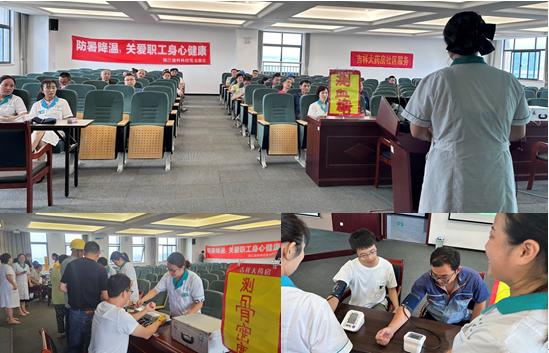 近日持續高溫,生產一線員工揮汗如雨,為了員工身心健康,2023年8月8日,建科科技黨支部開展“防暑降溫,關愛職工身心健康”為主題的黨日活動。此次活動邀請鎮江吉祥大藥房工作人員現場為職工講解防暑降溫的注意事項,并針對公司生產場所和特殊工種詳細講解防暑降溫的具體措施,以及應急救援的方式方法。活動中,藥房工作人員免費為職工測量血壓、血糖、骨質密度以及幽門螺旋桿菌等項目。